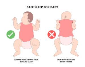1. Back to Sleep: Lay your baby on their back to sleep on a firm mattress, free from pillows, blankets, or stuffed animals. This reduces the risk of Sudden Infant Death Syndrome (SIDS). Putting them on their side as well increases the risk of SIDS.